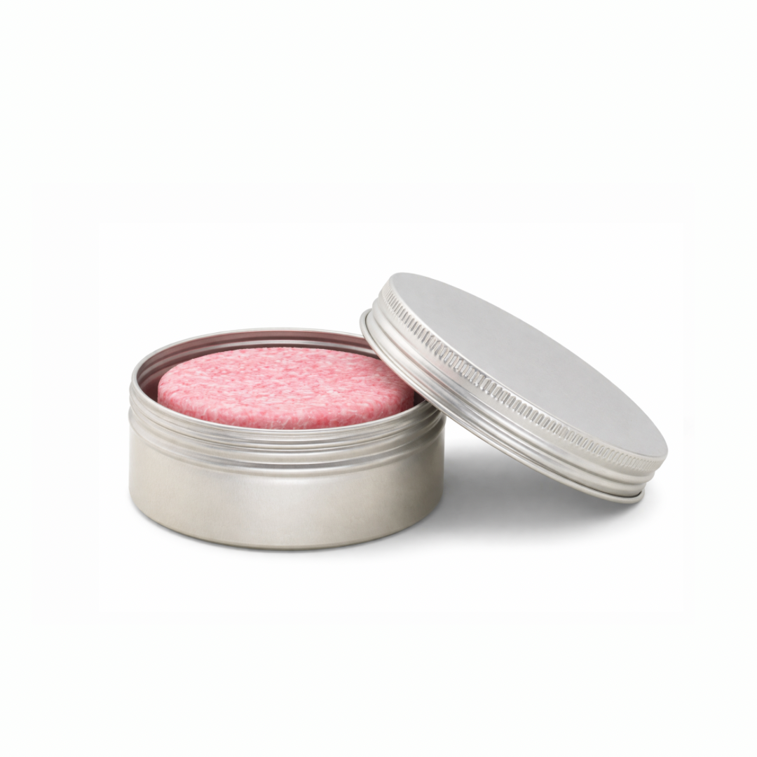 Förvaringsdosa i aluminium för schampo & balsam – med plats för luffakudde. Endast dosa, tillbehör ingår ej.